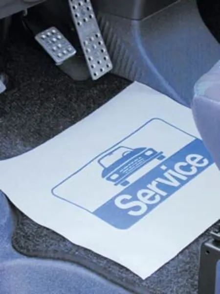 De mat die de autovloer tijdens de reparatie schoon houdt.