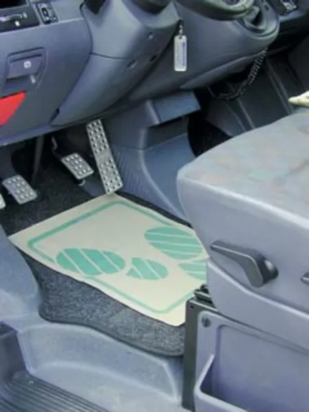 De mat die de autovloer tijdens de reparatie schoon houdt.